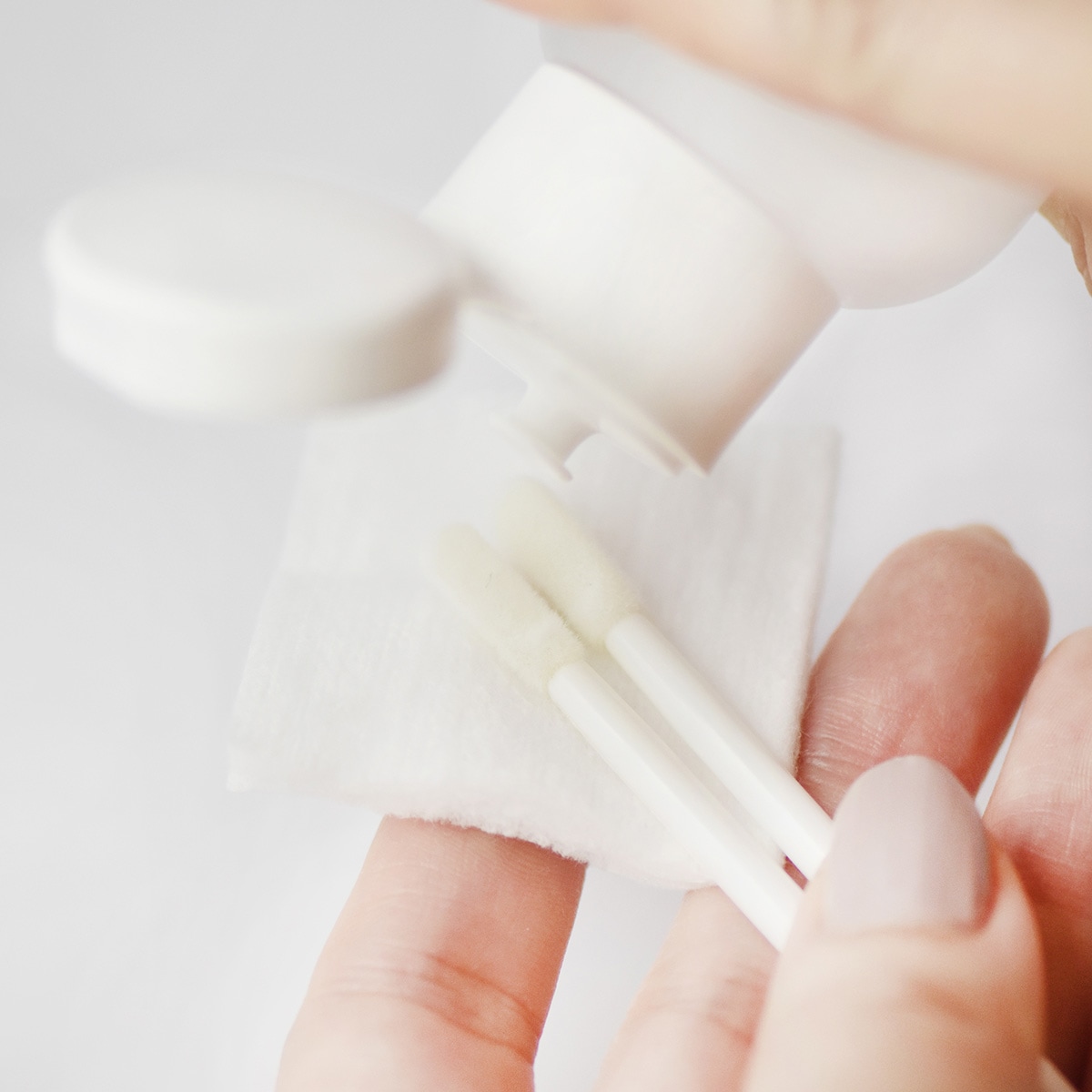 ●使用方法 まつげ: 本商品を含ませた綿棒でまつげを上下から挟み、拭き取ります。 細かい汚れや毛穴洗浄は、マイクロスティックやフラットアイチップをご使用ください。 洗浄後、まつげが乾いてからエクステを装着してください。 眉毛: 本商品を含ませたコットンで眉毛の汚れや皮脂を拭き取ります。 ※まつげや眉毛にメイクをされている場合は、クレンジングで落としてから本商品をご使用ください。