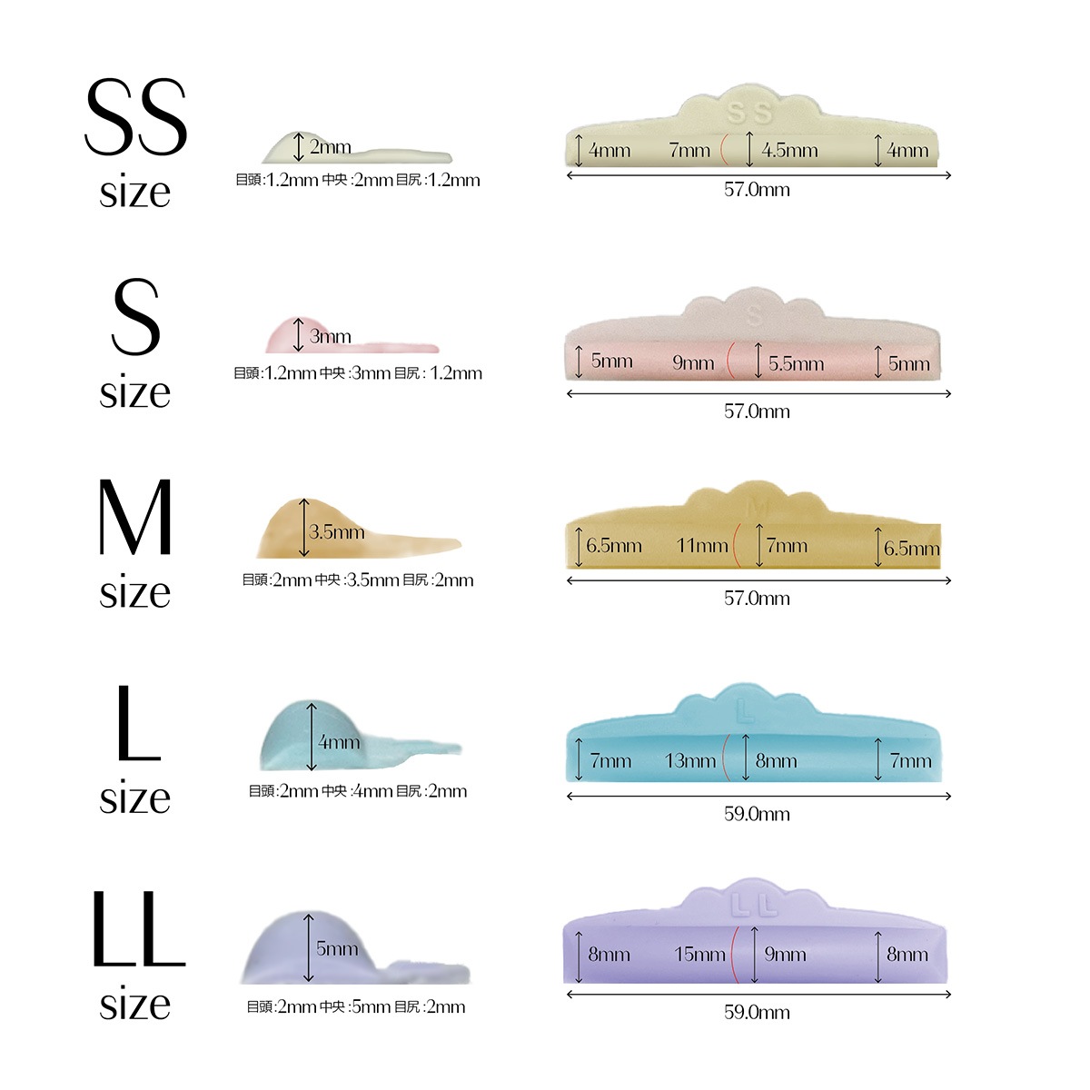 ●サイズ:SS/S/M/L/LL(5種類)