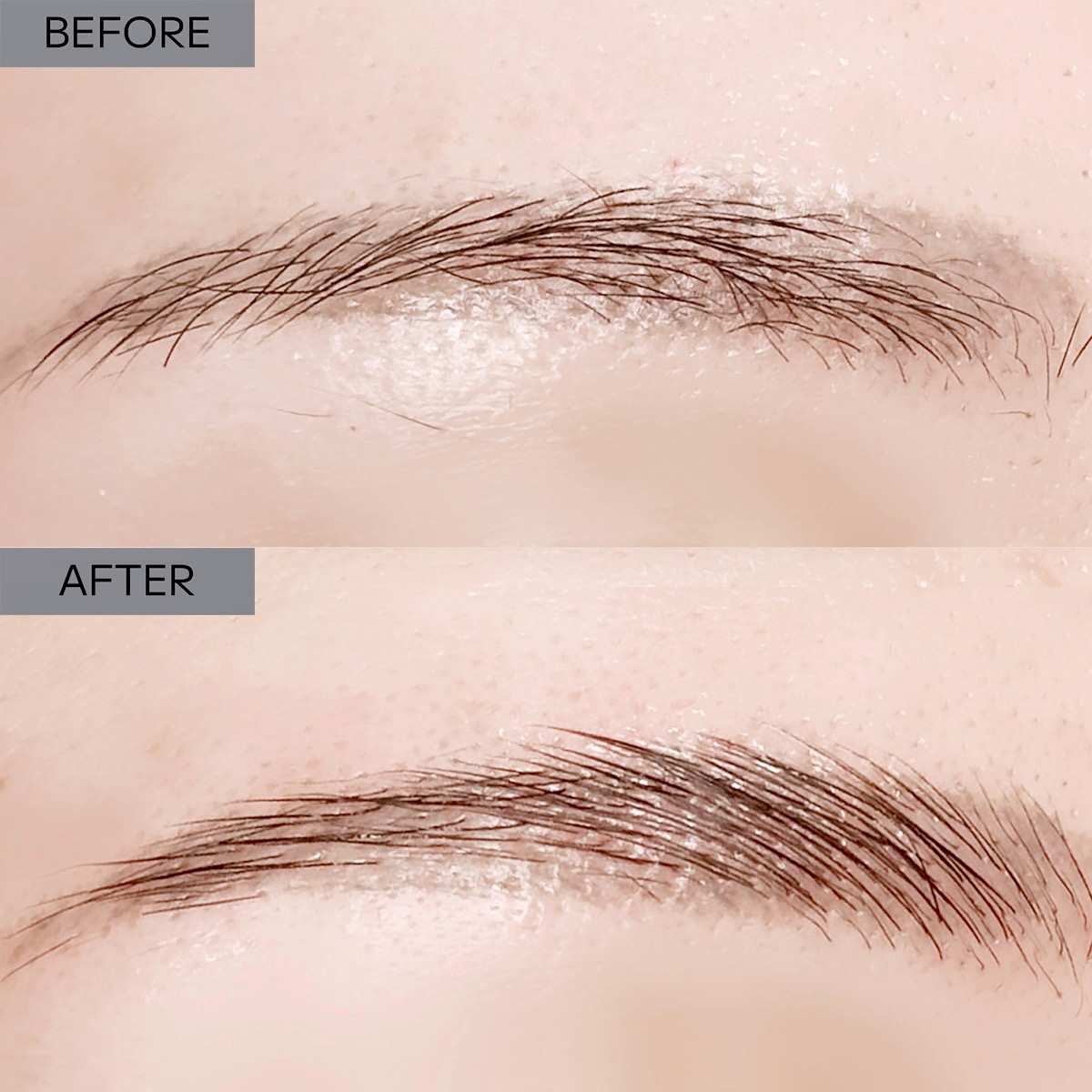 ●眉毛使用方法 1)グルーで毛流れを整えた眉毛に1剤を塗布します。